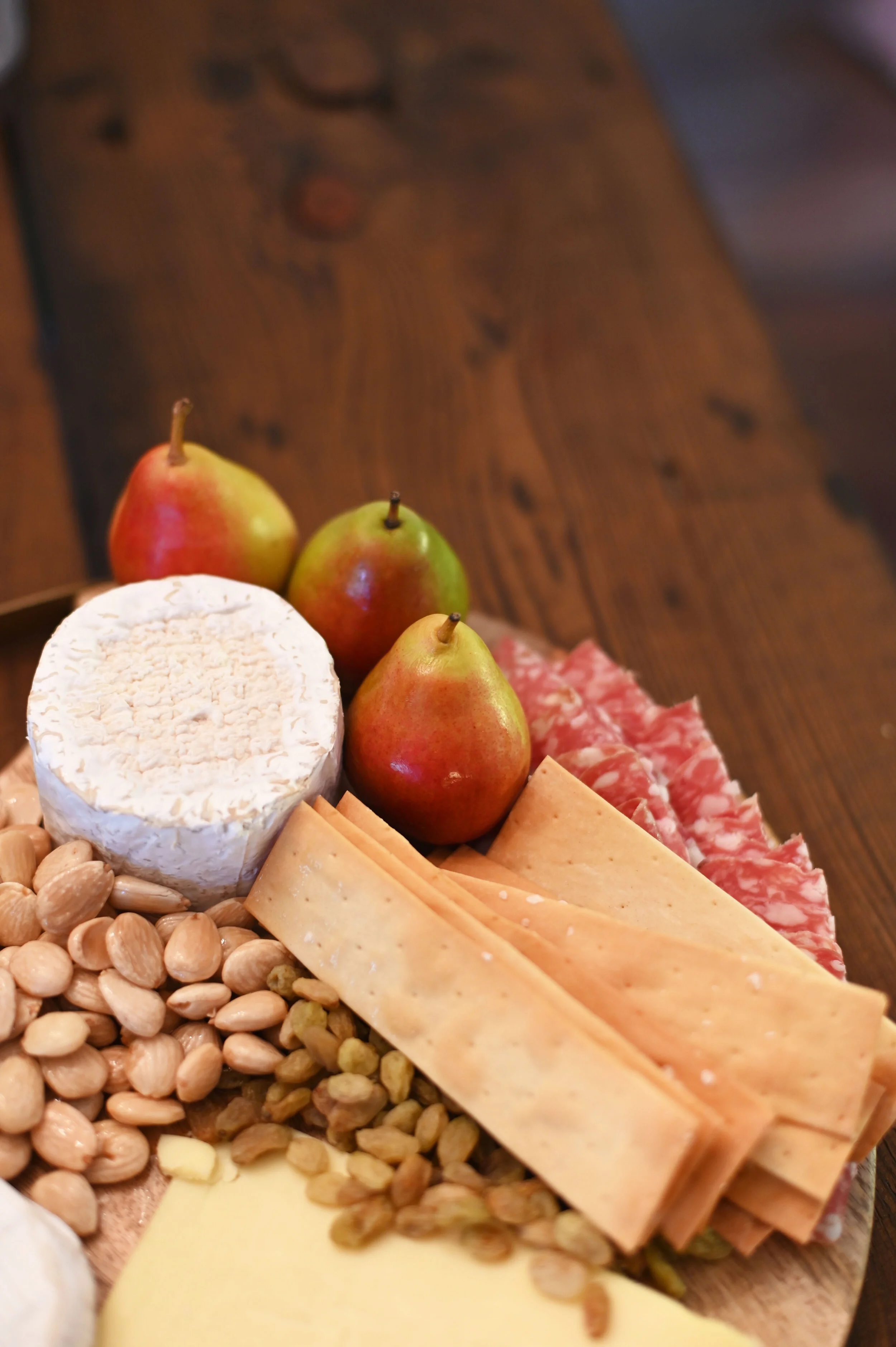 3. Fruit: Fruit goes incredibly well with cheese and we typically include it in both the fresh and dried forms. Apples, pears, and figs are a good place to start but other fruits such as citrus, berries, and stone fruits work extremely well too. Can’t decide what to choose? Go with what is in season. For instance in the fall we choose pears and pink pearl apples for their look and tart flavor. Both are in season so were wonderfully flavorful for the board. We also without a doubt include dried fruit such as apricots, oranges, or cranberries on our boards. They add a different dimension to the cheese than the fresh fruit when combined.
