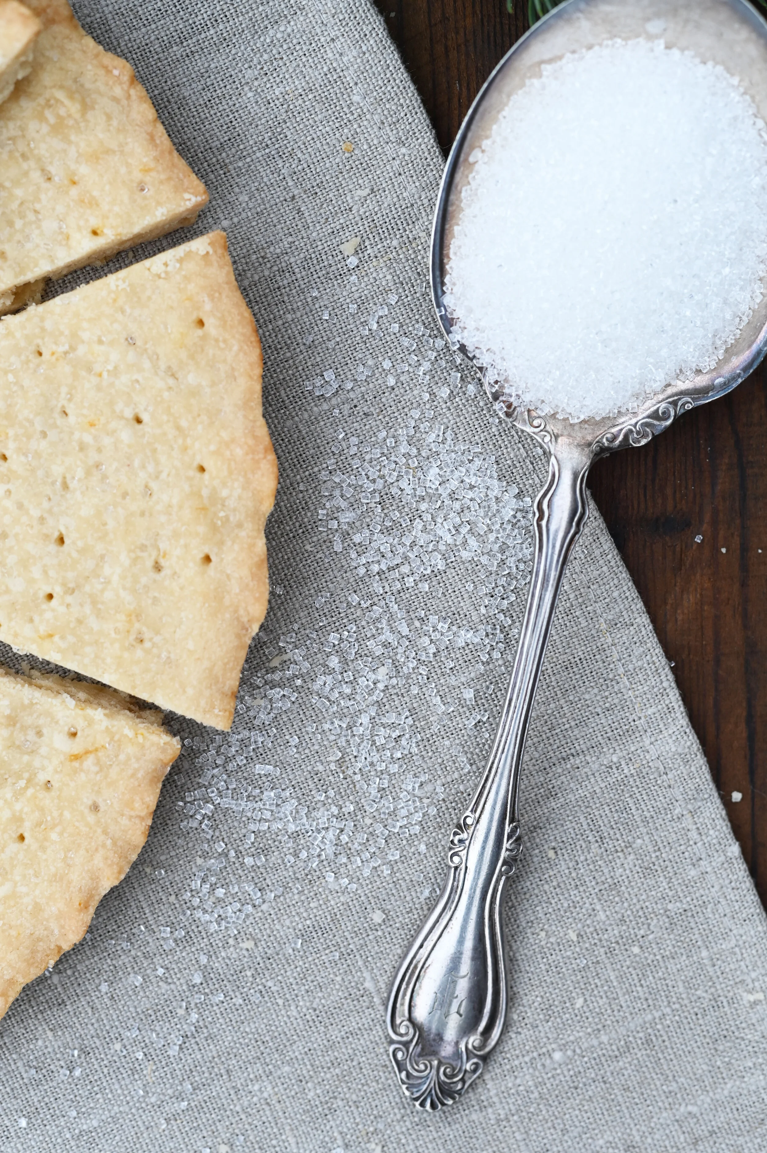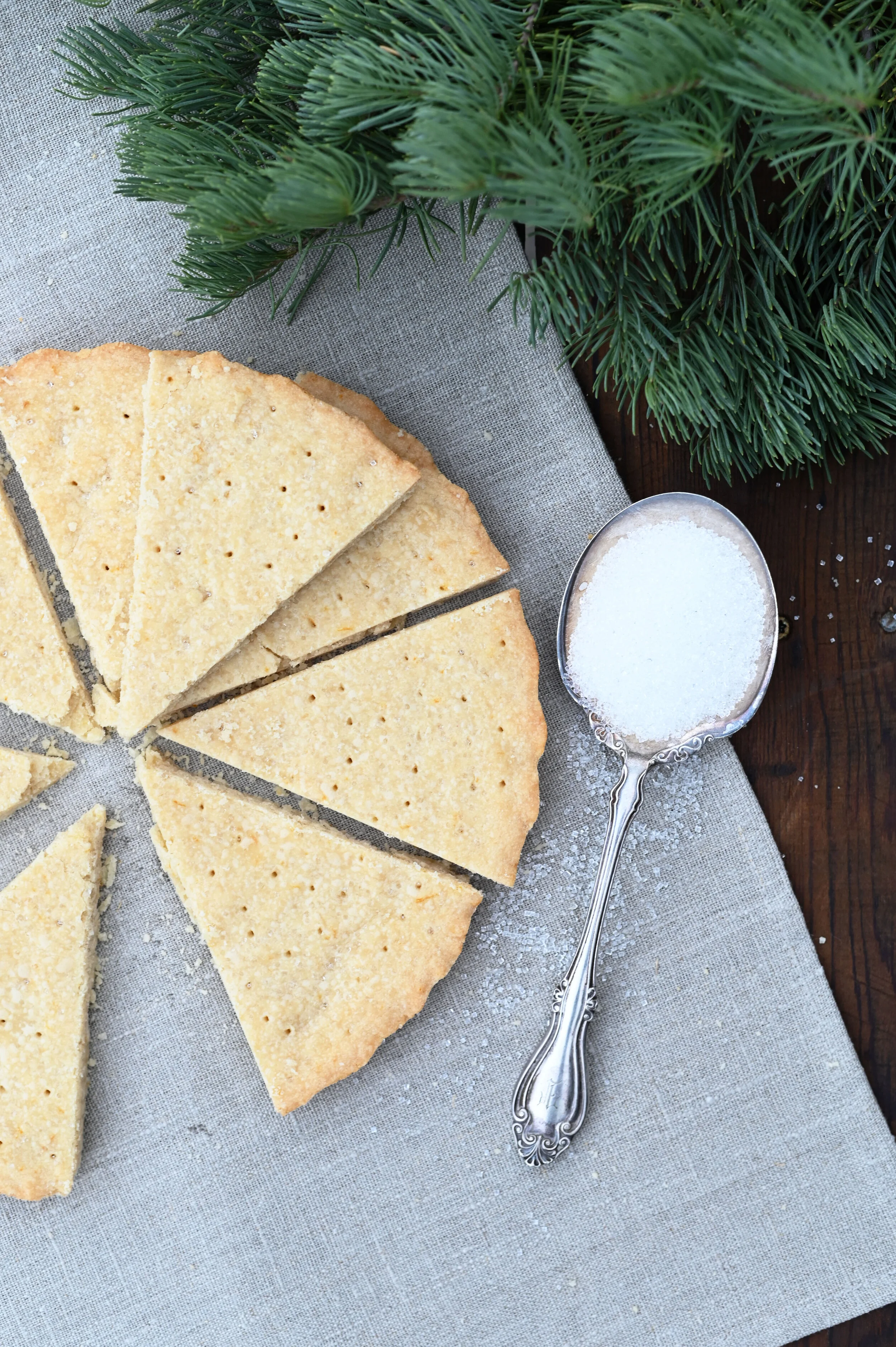 These cookies are the perfect confection for any holiday gathering or gift basket. With their subtly sweet and buttery flavor - they are a total crowd pleaser. We have always adored plain shortbread, but there is something so special about the touch of a wintery citrus. Adding the zest of an orange sets these over the top. Not only does it add more festive Christmas flavor, it amplifies the overall impact of this cookie. For our recipe, we scored the dough and baked it in a ceramic pie pan to attain a lovely scalloped edge. And just before placing it in the oven, we sprinkle our dough to create a lovely sparkling effect. But if you are looking to decorate, this same recipe can be made with a cookie cutter into all wintery shapes. Even add a drizzle of dark chocolate for a sophisticated touch.