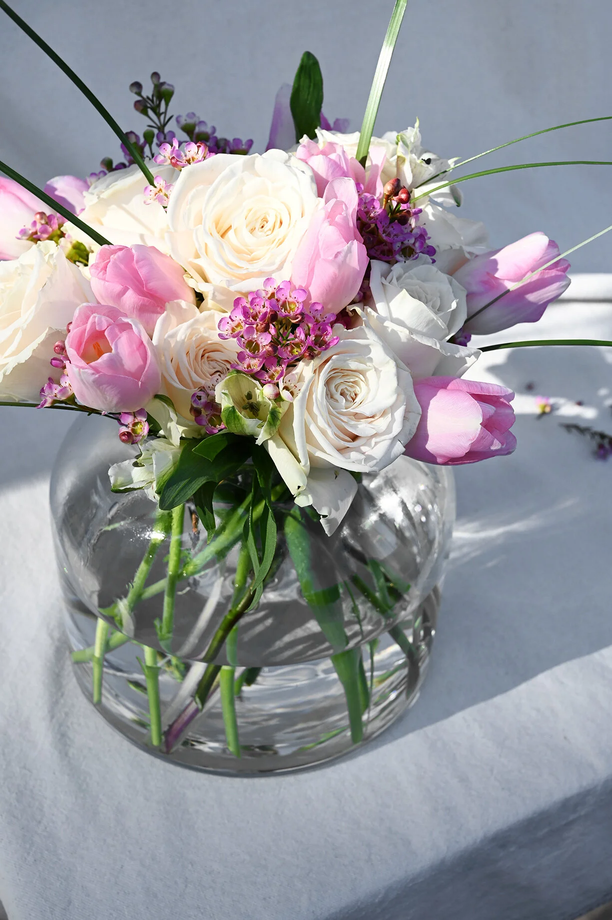 3. Shape, texture, and height- To add visual interest to your bouquet look for flowers in different textures and sizes. This gives depth to the bouquet and will give the appearance that it is well rounded. Don’t underestimate the power of a small flowering branch, greenery, or grasses. These flowers don’t immediately draw your eye but you will be surprised at how much they add to your arrangement.